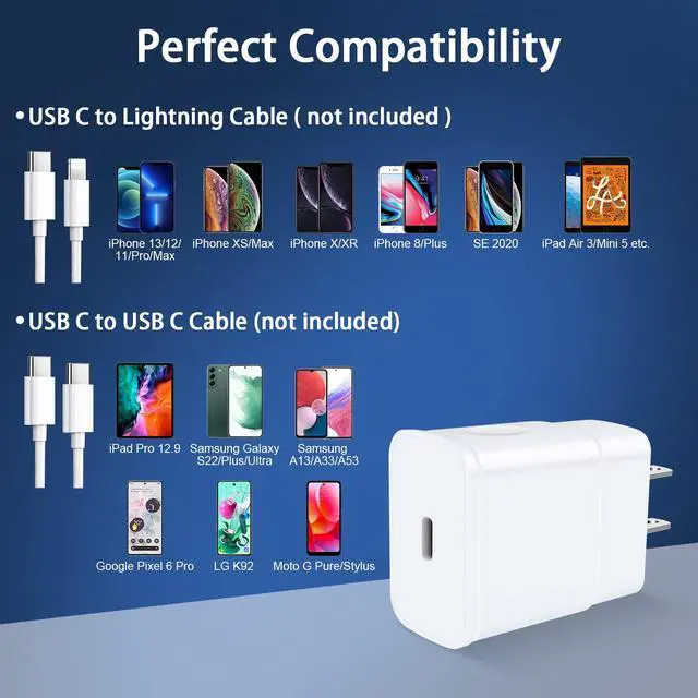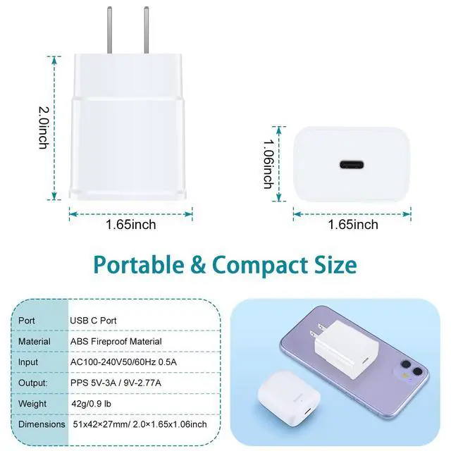PD 3.0 25W USB-C Power Adapter with USBC to USB-C Charger Cord