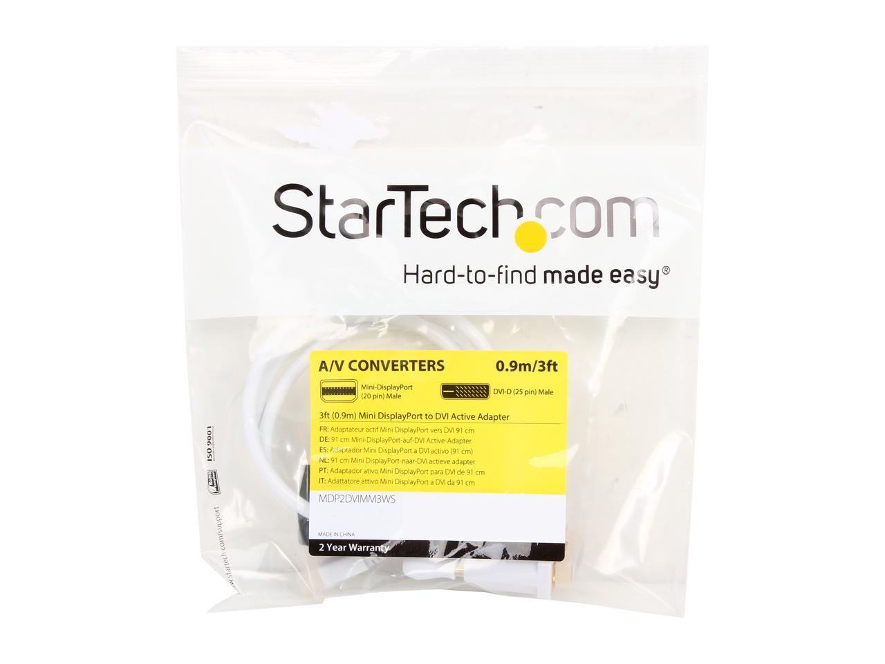 StarTech.com Model MDP2DVIMM3WS Mini DisplayPort to DVI Active Adapter Converter Cable - mDP to DVI 1920x1200 Male to Male
