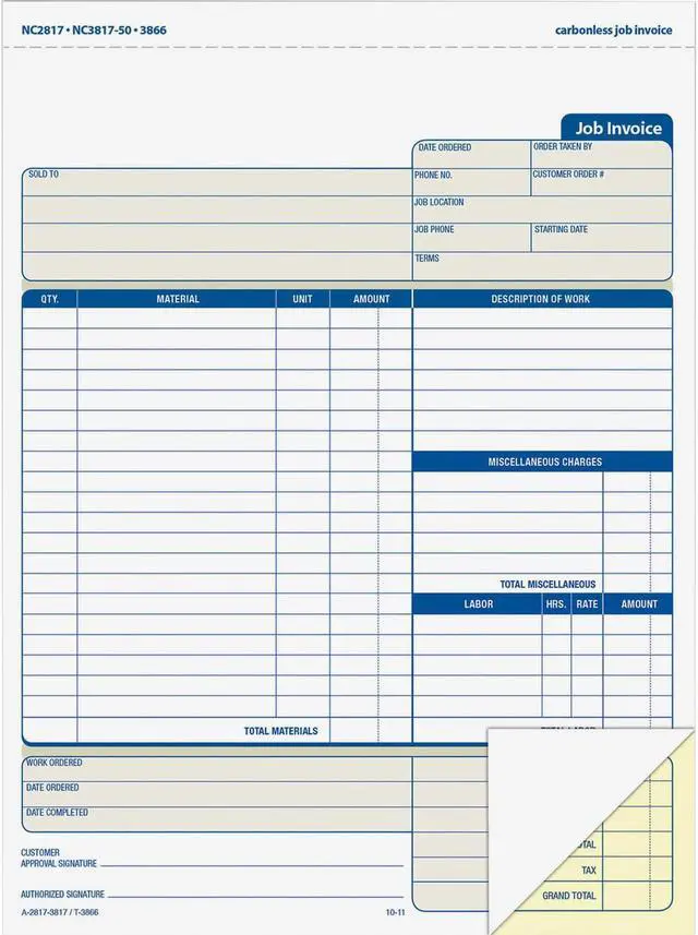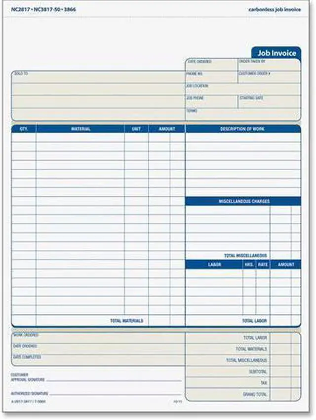 - Carbonless job invoice sets for service industries.