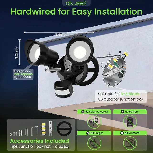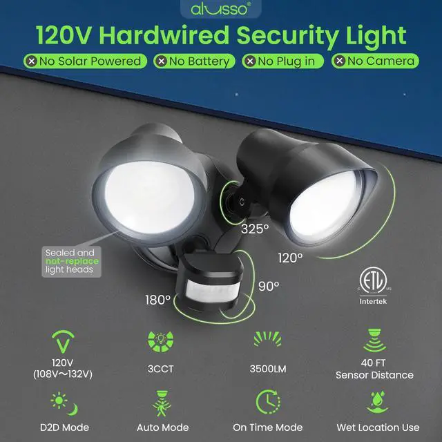 ALUSSO Outdoor Lights 3CCT 3000K/4000K/6500K Hardwired ETL Listed