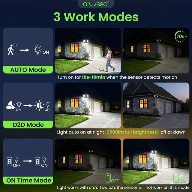 ALUSSO Outdoor Lights 3CCT 3000K/4000K/6500K Hardwired ETL Listed