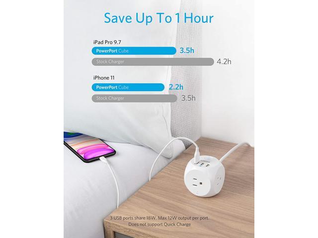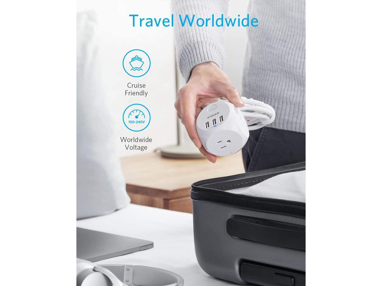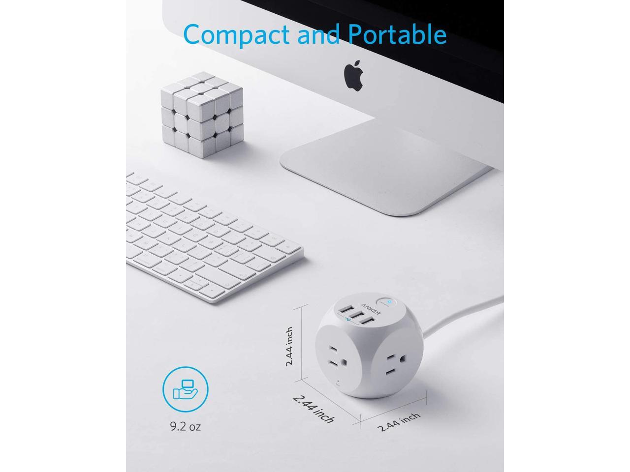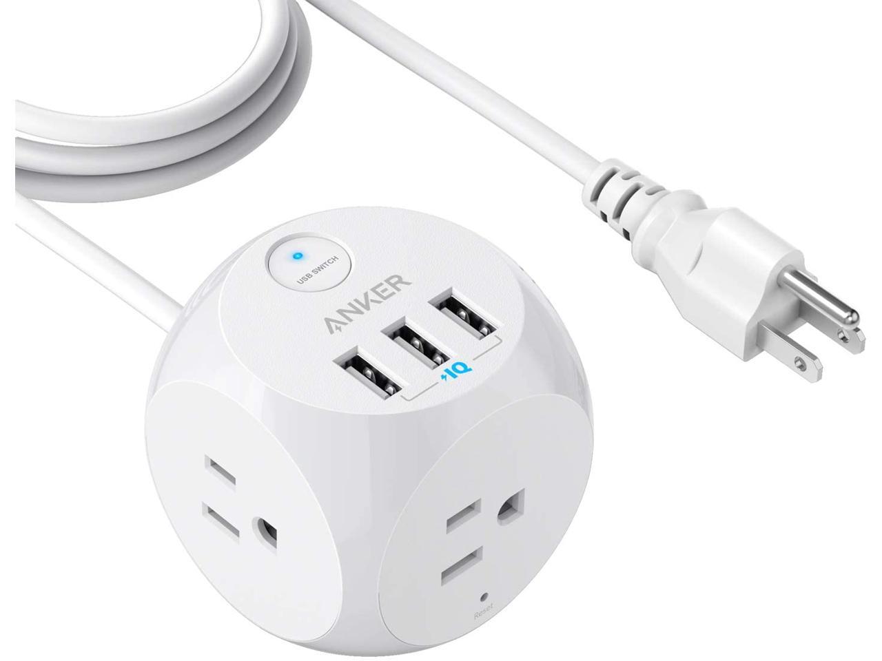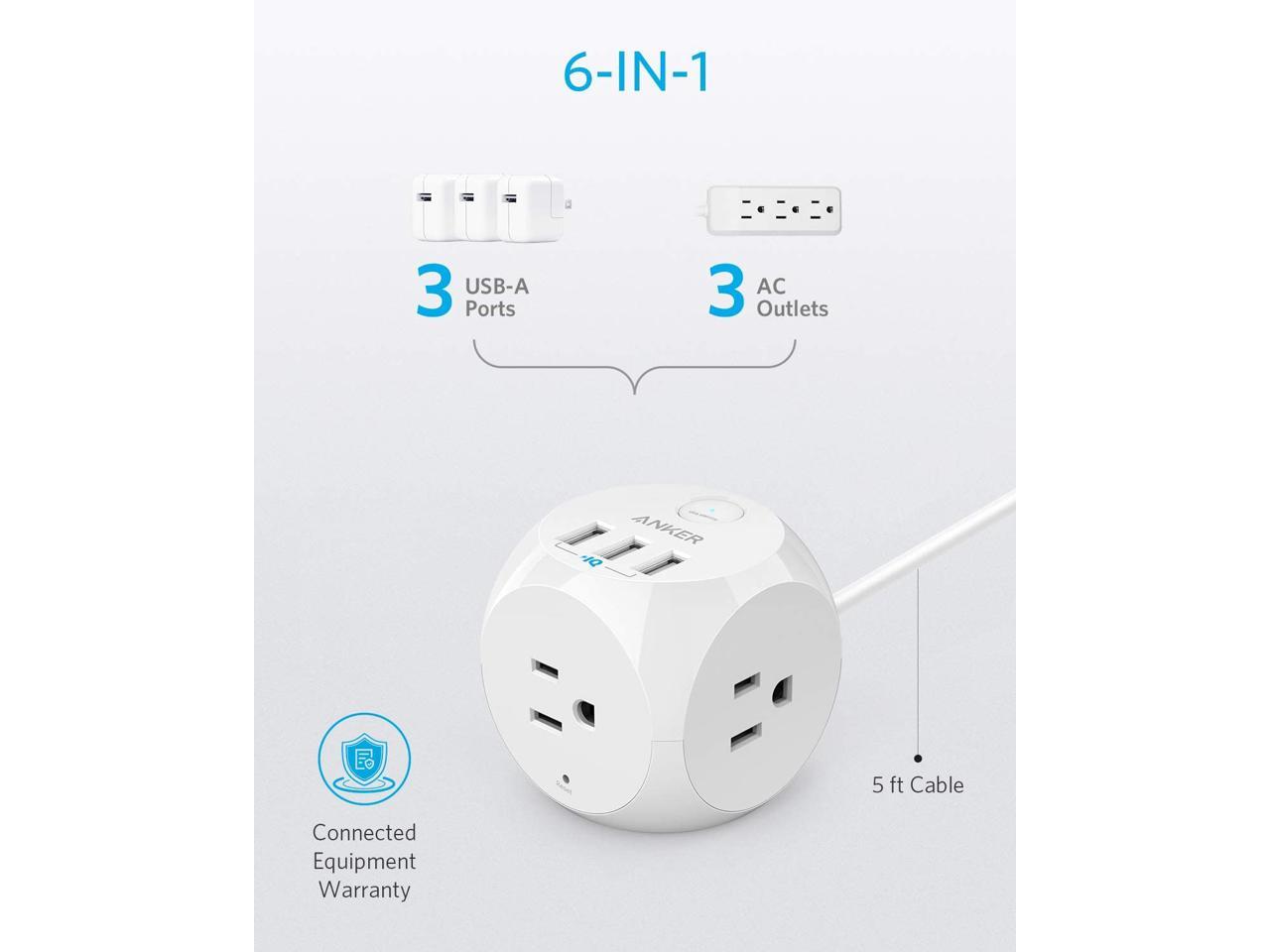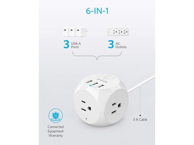Anker PowerPort Cube with 3 Outlets and 3 USB Ports, Portable Power Strip with USB, 5ft Extension Cord, Overload Protection for iPhone Xs/XR, Compact for Travel, Cruise Ship and Office