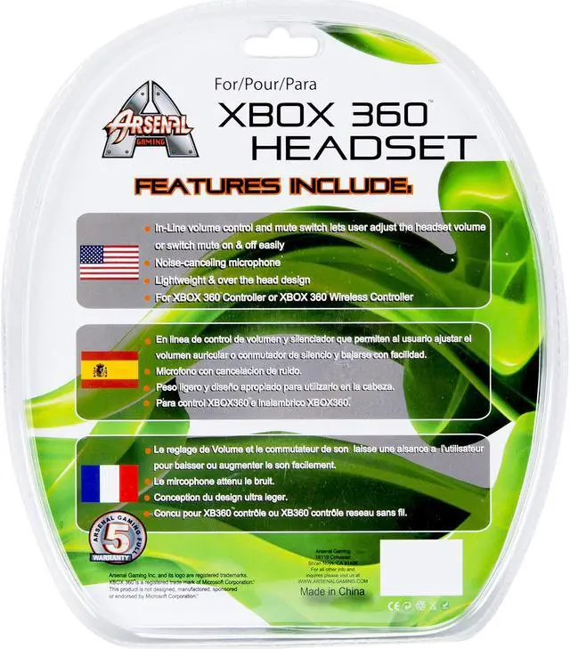 Built for XBOX 360The Arsenal Xbox 360 Headsets are designed for Xbox 360 gamers and provide clear, quality sound. The flexible boom microphone can be adjusted precisely, and the volume and mute controls let you adjust the volume or mute the microphone easily.