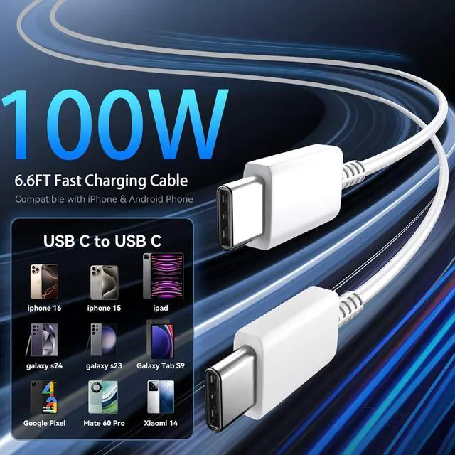 6.6Ft USB C Phone 17 Charger Cable Cord: The i-Phone 17 Pro Max Charger equipped with 2pcs 100W type c to c charging cable cord, charges at max 5A super speed and 480Mb/s transfer speed. 6.6ft extra length lets you freely charge your Phone 17 Pro Max from any occasions like on sofa/bed, or at office