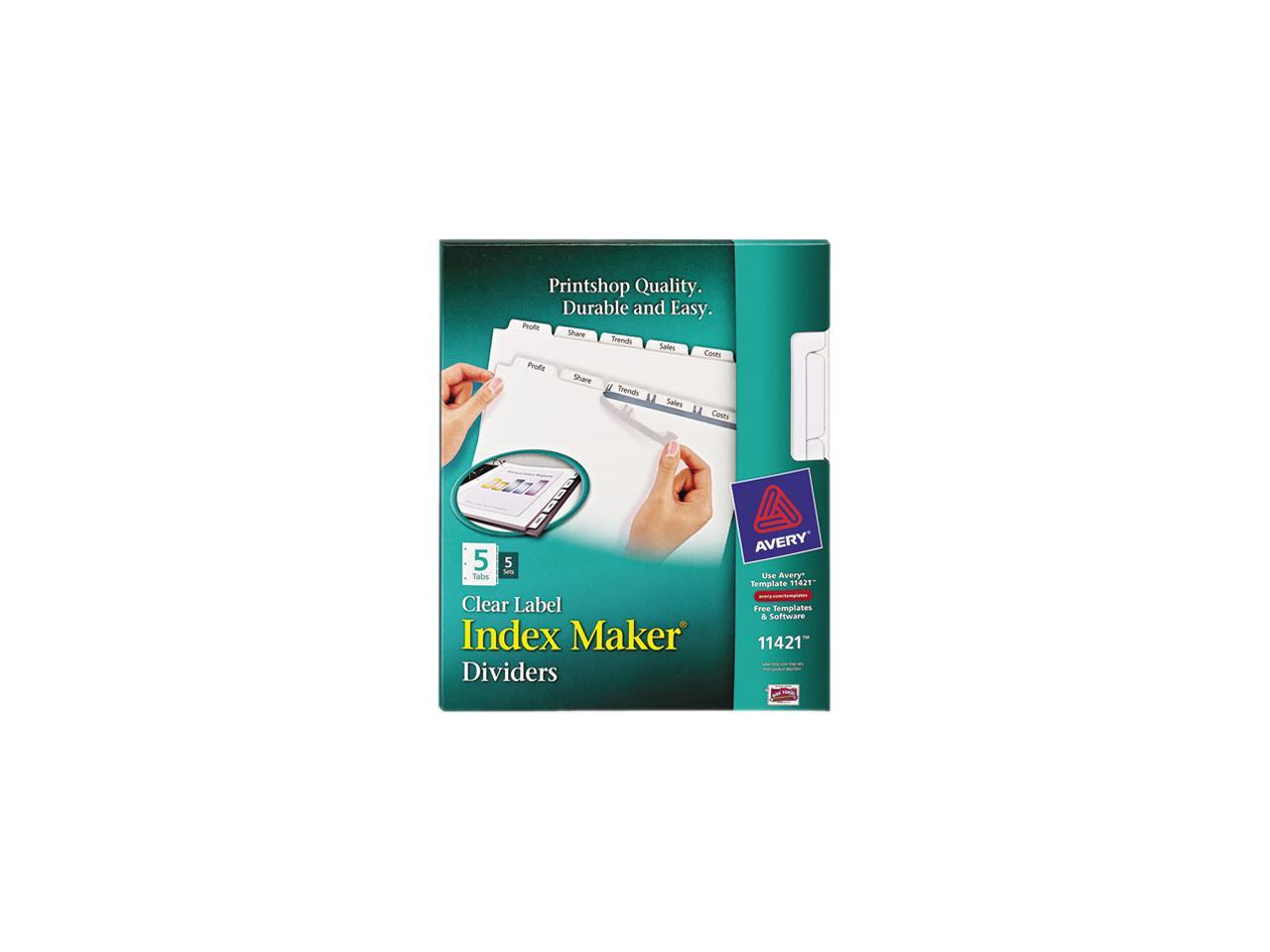 Avery 11421 Index Maker White Dividers For Copiers, 5-Tab, Letter, Clear, 5 Sets/Pack