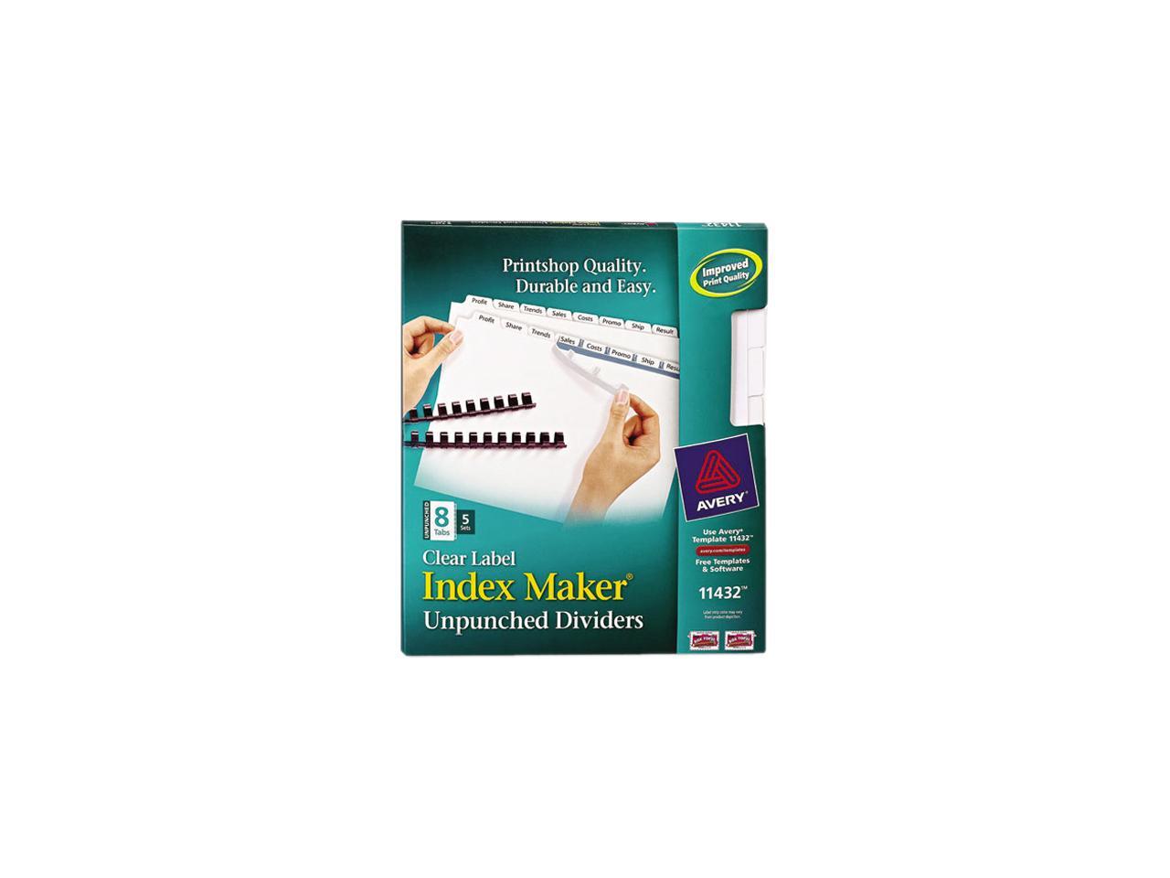 Avery 11432 Index Maker Clear Label Unpunched Divider, 8-Tab, Letter, White, 5 Sets