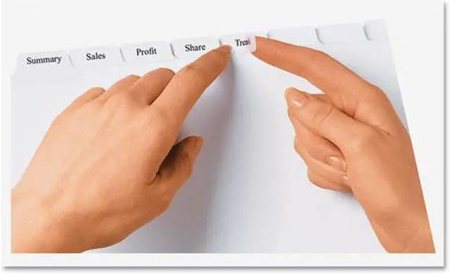 Personalize your tab titles and create dividers that look professionally printed. The clear tab labels virtually disappear when applied to premium white dividers. Label all tabs at once with Easy Apply clear labels. Perfectly align tab labels and label multiple sets quickly with Easy Apply label strips. Label sheet for labeling tabs is included. Avery offers many easy-to-use templates in Microsoft Word and other popular software programs. Labels are compatible with laser and inkjet printers. Three-hole punched dividers have a reinforced binding edge and are designed for use with three-ring binders.
