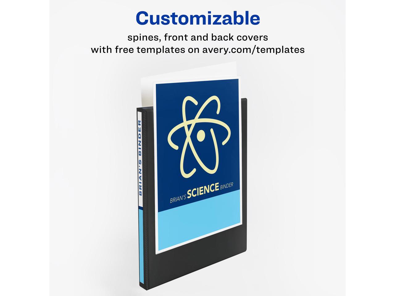 - 0.5 inch One Touch slant rings open with ease and keep pages secure; Holds up to 135 sheets. Easily customize a binder cover page using free templates and designs at avery.com/templates.