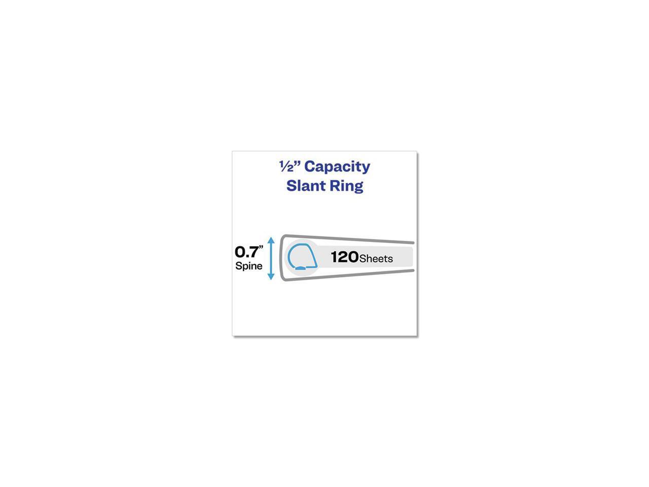 - 0.5 inch One Touch slant rings open with ease and keep pages secure; Holds up to 135 sheets. Easily customize a binder cover page using free templates and designs at avery.com/templates.
