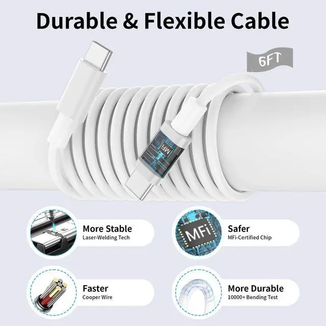 ![Alt view image 4 of 7 - USB C Fast Charger for iPhone 16 15, [MFi Certified] 3 Pack 20W PD USB C Wall Charger Plug Block with 6FT USB Type C Fast Charging Cable for iPhone 16/15/15 Pro/15 Pro Max/15 Plus/iPad Pro Air Mini](https://c1.neweggimages.com/productimage/nb640/C5AVD2603060XFBT031.jpg)