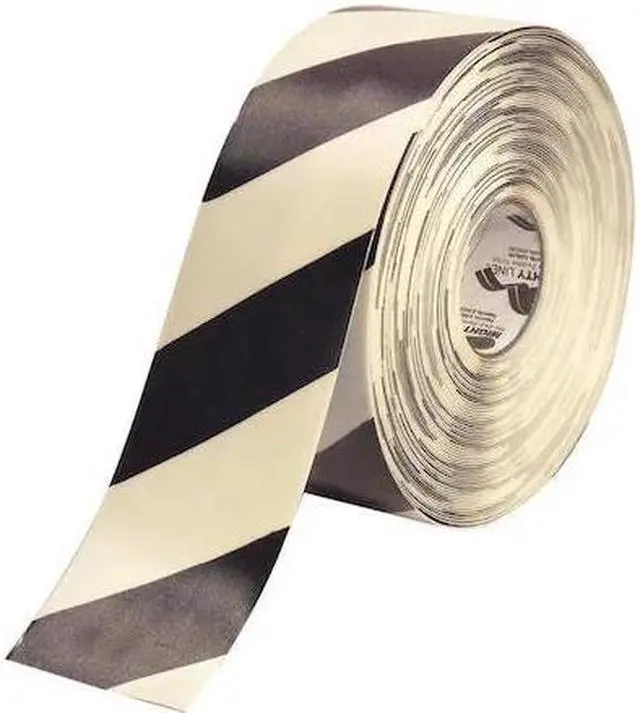 Floor Marking Tape, Continuous Roll, Striped, Black/White, 4 in, 100 ft, 50 mil, Vinyl, Mighty Line (R), Legend No Legend, Glow In The Dark No, Retroreflective Grade Non-Reflective. This item has been restricted from sale in the following state (s): []