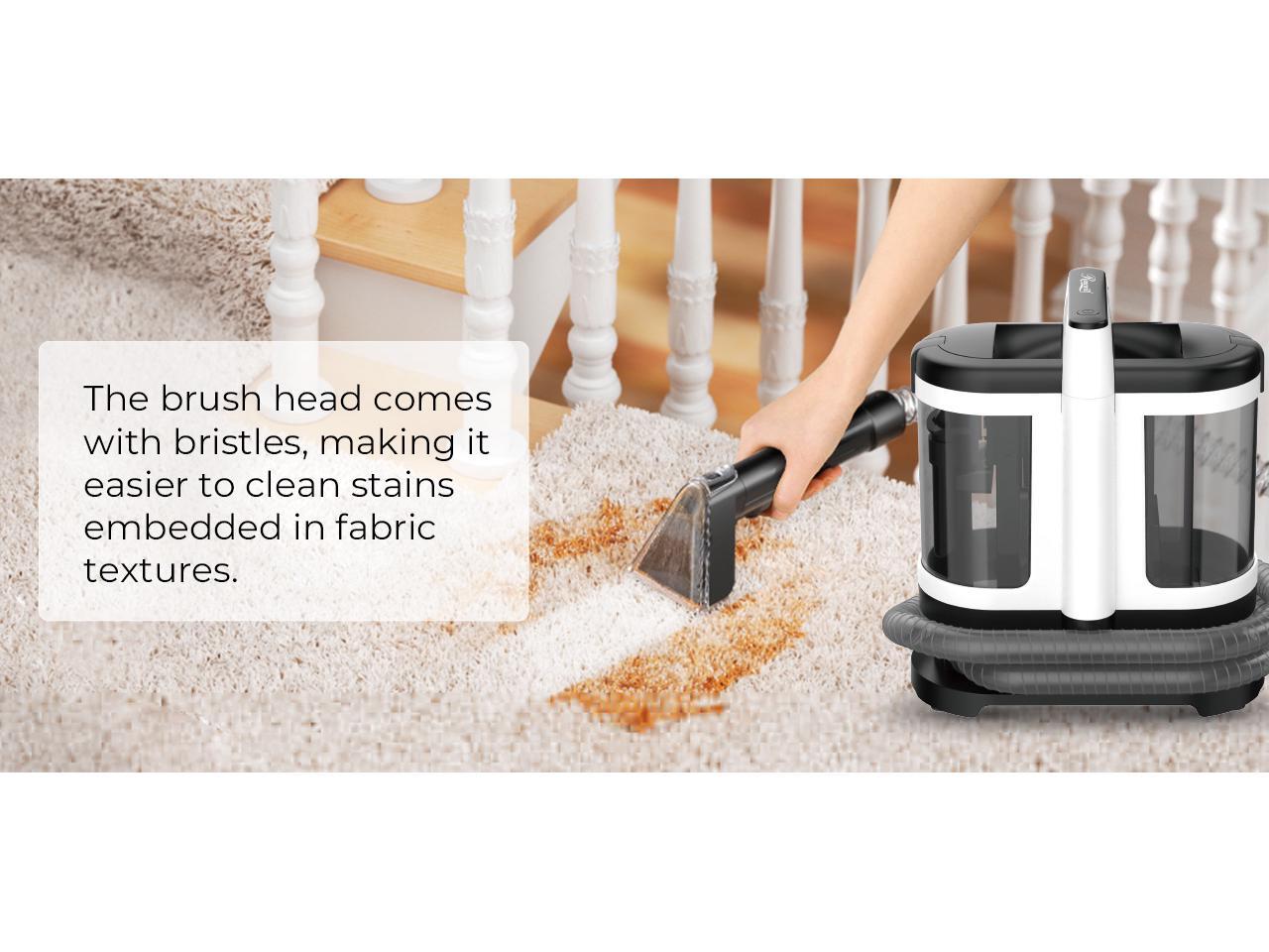 - The brush head comes with bristles, making it easier to clean stains embedded in fabric textures.