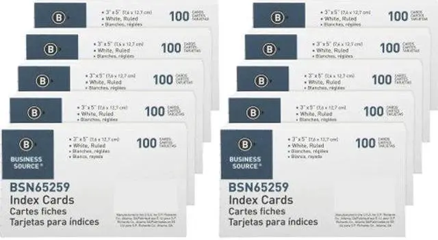 | Features | Ruled index cards make note-taking easy and simple. Cards are rotary-cut for uniform height and horizontally ruled on one side only for versatile note-taking space. Each card offers an 8 point thickness, 72.00 lbs. basis weight and a 160 gsm index cardstock. |