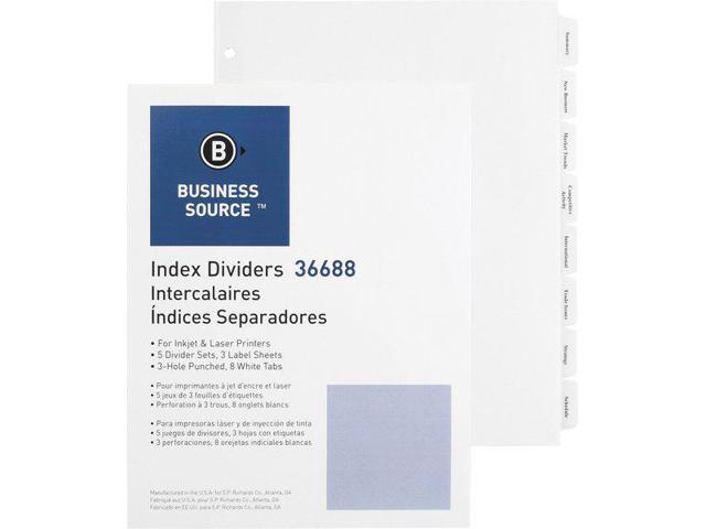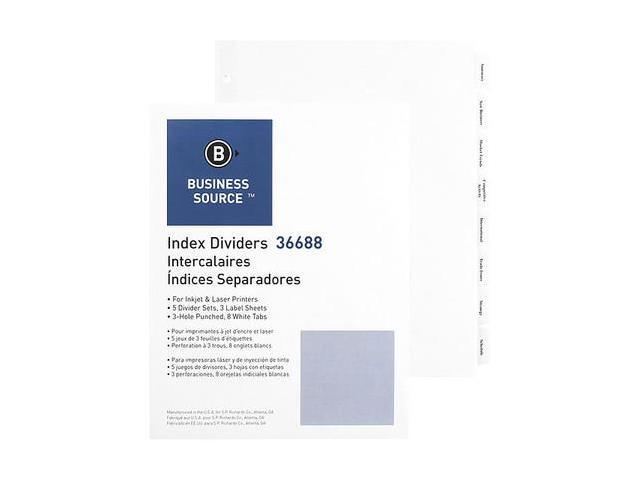 Business Source Index Dividers 3HP 8-Tab 5 ST/PK 11"x8-1/2" White 36688