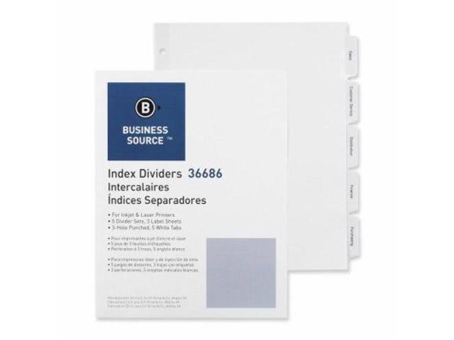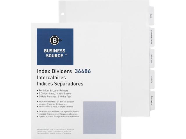 Business Source Index Dividers 3HP 5-Tab 5 ST/PK 11"x8-1/2" White 36686