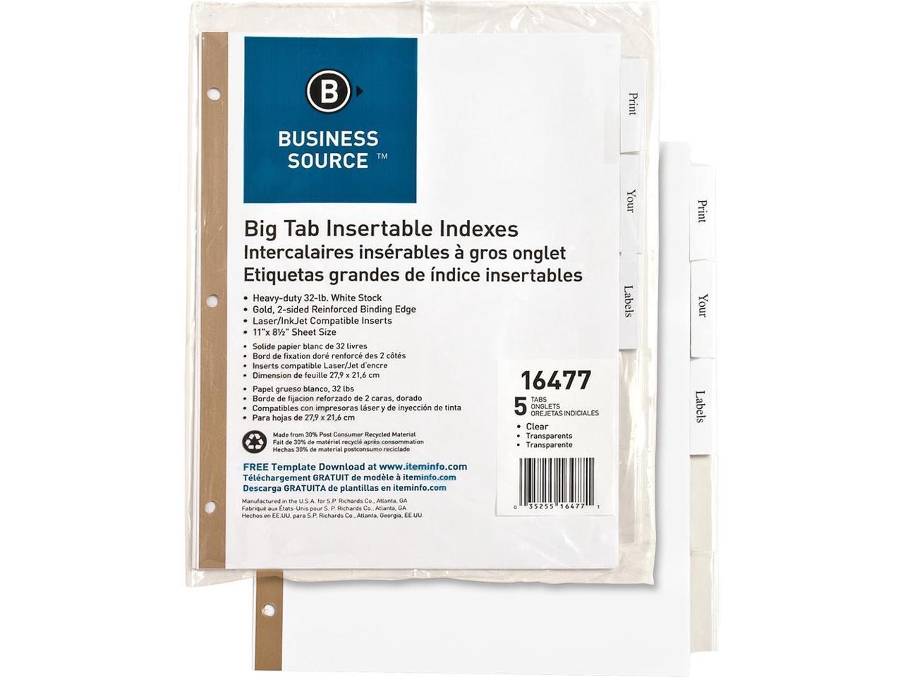 Business Source Index Dividers 5-Tab 11"x8-1/2" White Stock/Clear Tabs 16477