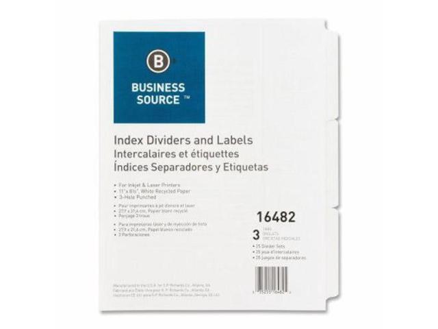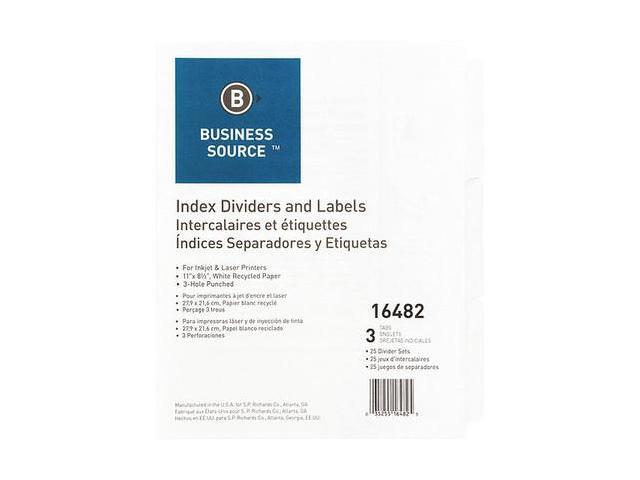 Business Source Index Dividers 3HP 3-Tab 25 Sets/BX 11"x8-1/2" White 16482