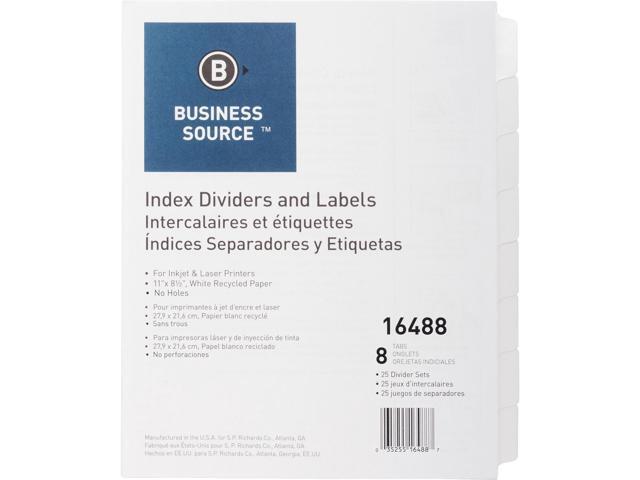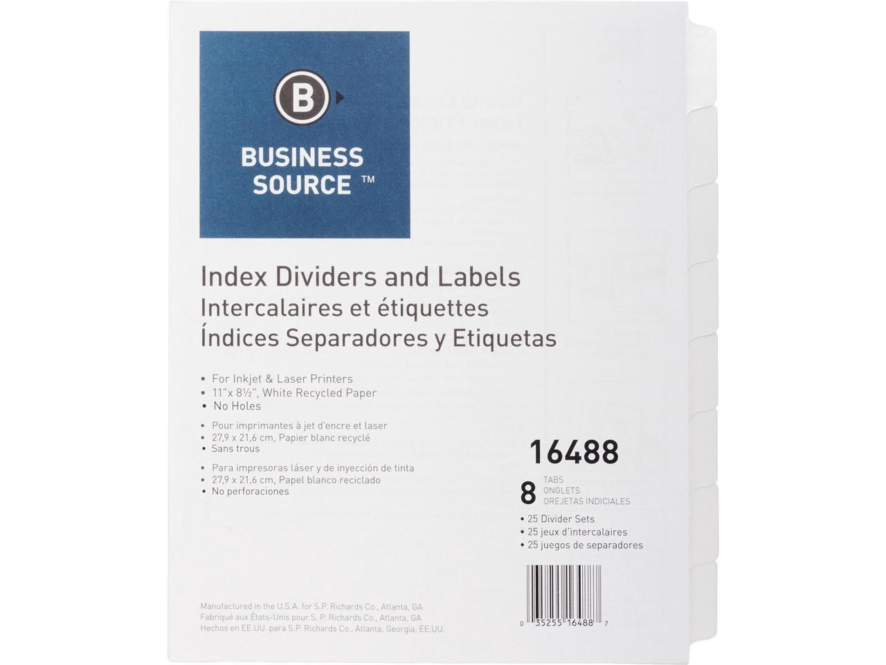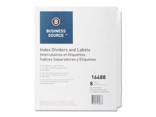 Business Source Index Dividers Unpunched 8-Tab 25 Sets/BX White 16488