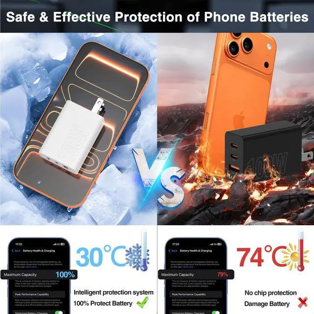 ![Alt view image 5 of 7 - 65W Super Fast Charger USB C for iPhone 17 16 15 Pro Max,2Pack 100W [65W Max] 3-Port USB C Wall Charger Block & 3/6/10/10FT Braided Type C Cord for iPhone 17,MacBook iPad for Samsung Galaxy S26 Ultra](https://c1.neweggimages.com/productimage/nb640/C5AVD2603060Y8Y2UED.jpg)