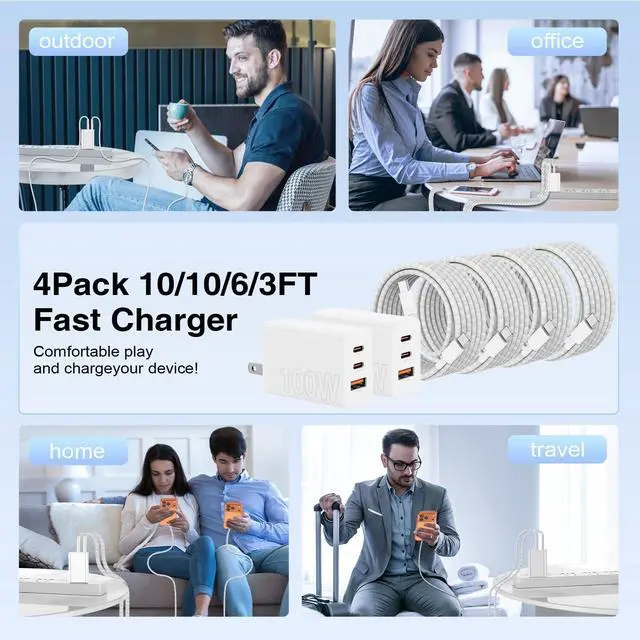 ![Alt view image 4 of 7 - 65W Super Fast Charger USB C for iPhone 17 16 15 Pro Max,2Pack 100W [65W Max] 3-Port USB C Wall Charger Block & 3/6/10/10FT Braided Type C Cord for iPhone 17,MacBook iPad for Samsung Galaxy S26 Ultra](https://c1.neweggimages.com/productimage/nb640/C5AVD2603060Y8Y04B1.jpg)