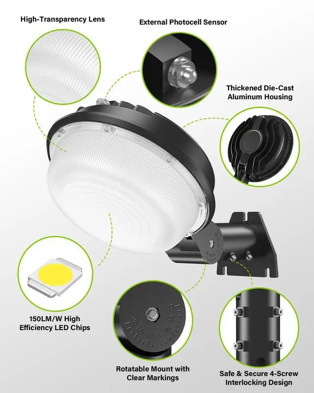 Our LED Barn Light is built to withstand the elements with IP65 waterproof, windproof, cold-proof, and sunproof features, ensuring reliable illumination in any conditions. Note: woking temperature range is -13?to 113?.