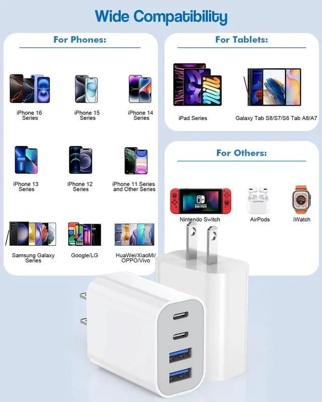 < br> The Multi-Port USB-C Wall Adapter is compatible with both US and international voltage and frequency standards, featuring built-in protective mechanisms to safeguard your devices from over-current, over-voltage, and short-circuit issues< br>< br> Wide Compatibility