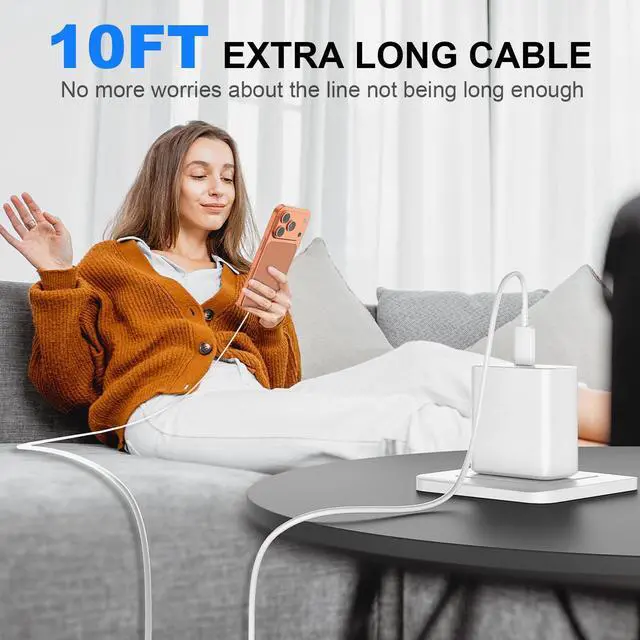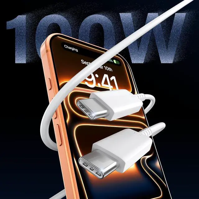 100W 10Ft iPhone 17 Charger USB C Cable Cord The iPhone 17 16 Pro Max Charger kit comes with a 100W detachable USB C to USB C cable, super fast charge with max 5A current for your phone from any other USB-C power source such as your iPhone 17 16/ iPhone 17 16 Plus/ iPhone 17 16 Pro/ iPhone 17 16 Pro Max;and the 10-Foot length long enough to be convenient to charge your device in bedroom, sofa, office