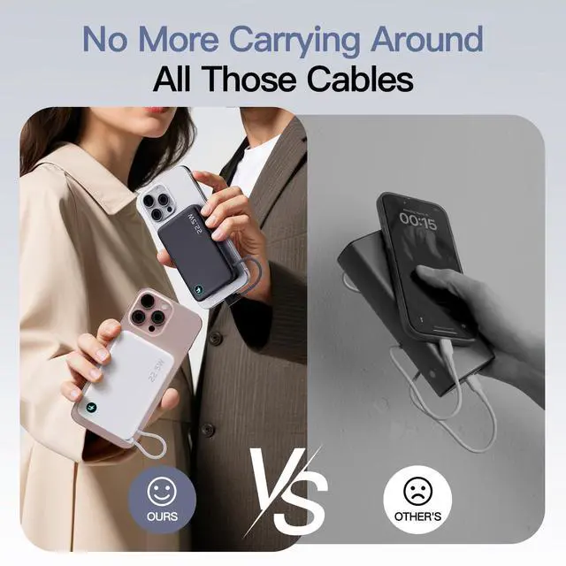 Unrivaled Convenience with Built-in Cable: Experience ultimate portability with the FancyBean M3. This 12800mAh magnetic power bank features an innovative built-in USB C cable that doubles as a lanyard for easy carrying. This versatile cable supports both input (for recharging the power bank) and output (for charging your devices), eliminating the need to carry extra cables. Simply grab and go, ensuring you're always prepared for on-the-go charging.
