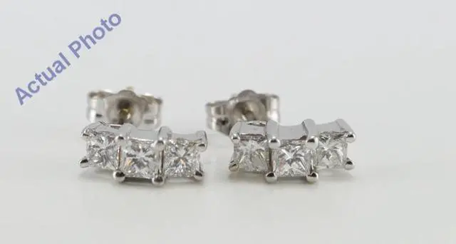 This pair of Princess shaped diamond earrings is a must have gift. The earrings are set in 14K White Gold. The total carat weight of the diamonds in this pair of earrings is 1. The color of the stones in this pair of earrings is G-H and the clarity is SI1-VS2. All our diamond stud earrings arrive in a classic gift box and come with a 30-day return policy.