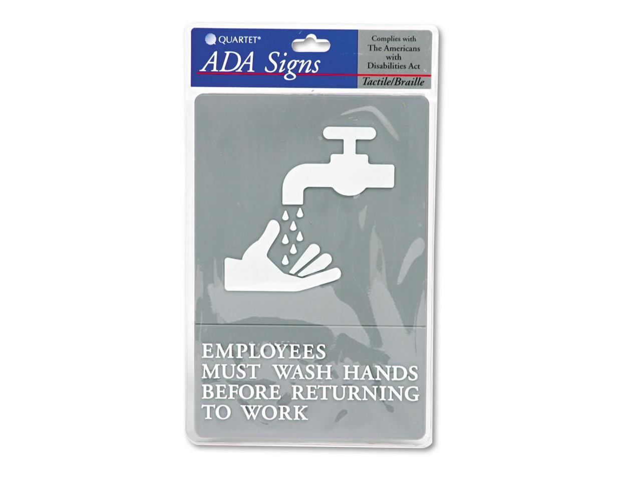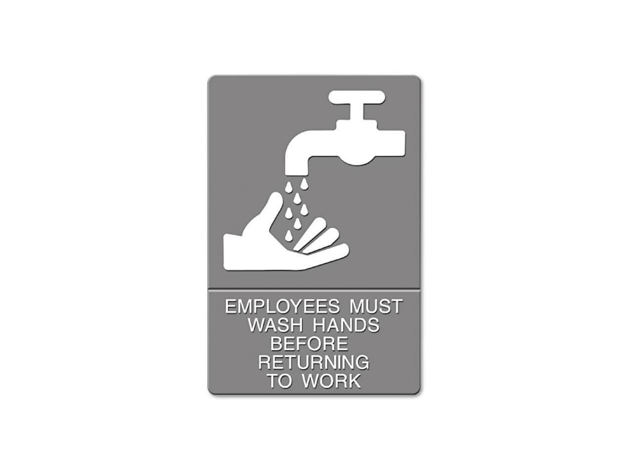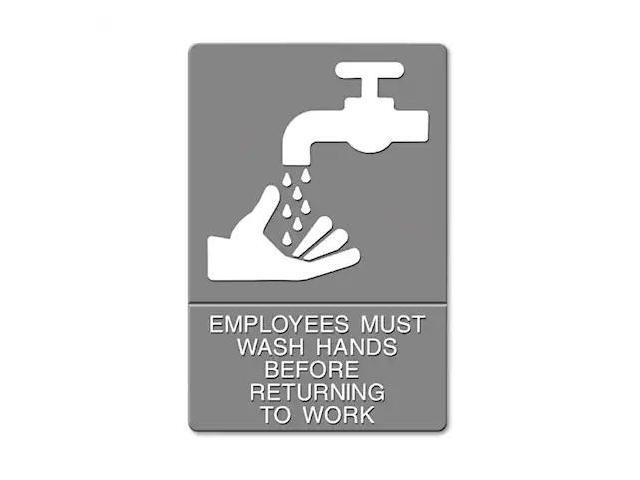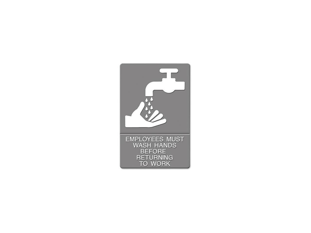 Headline Sign ADA Sign EMPLOYEES MUST WASH HANDS... Tactile Symbol/Braille 6 x 9 Gray 4726