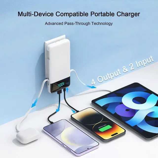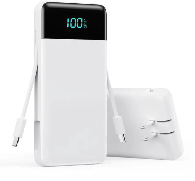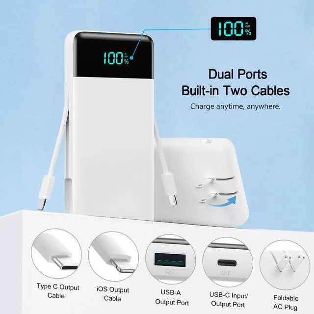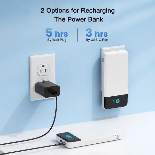- Built-in AC Wall Plug: Fold it out and recharge the power bank directly from any wall outlet. No separate charging cable needed!
