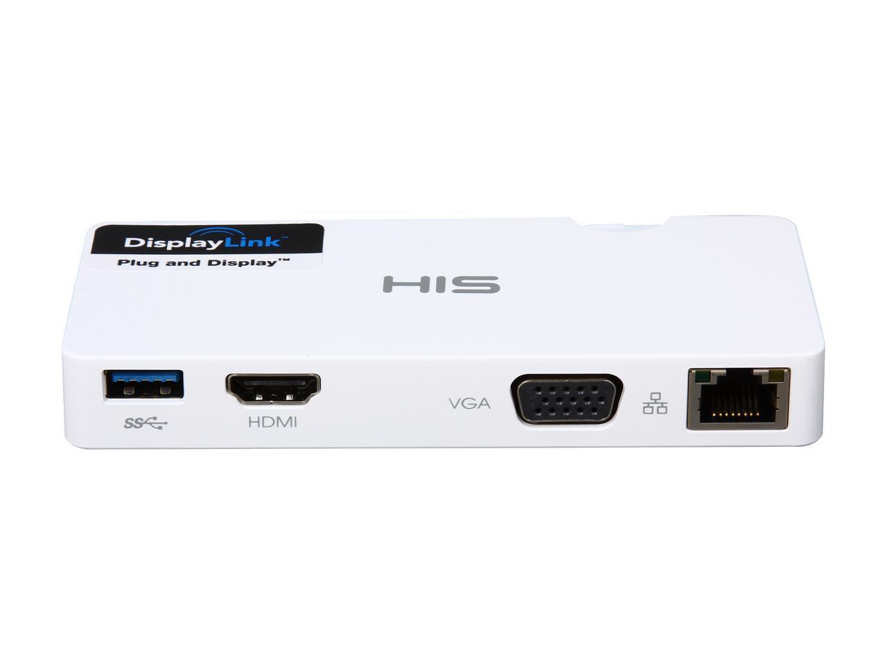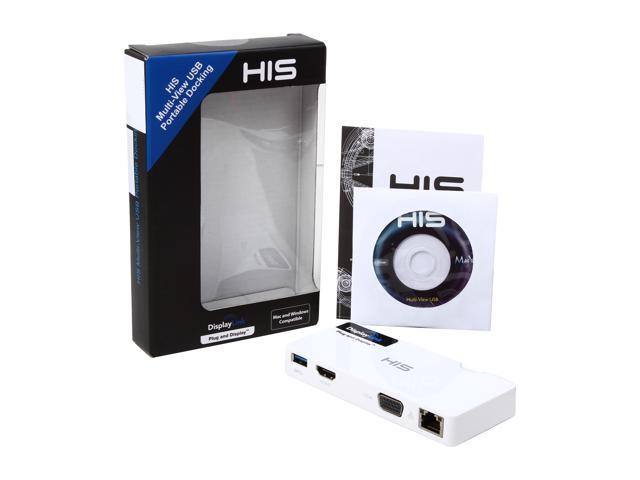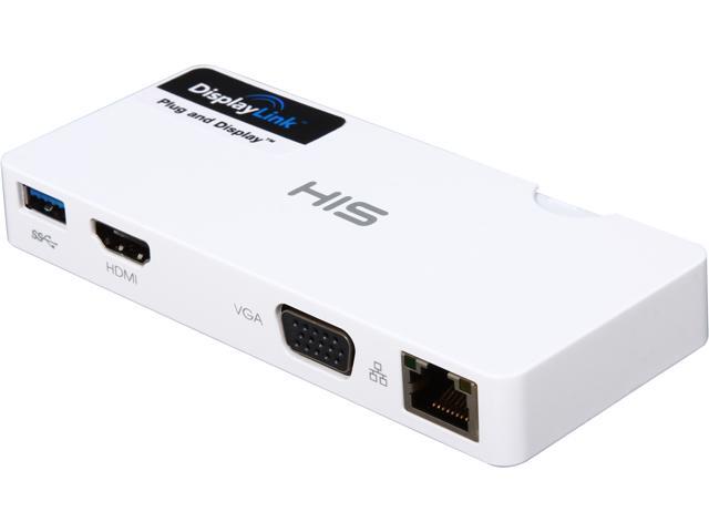 HIS Multi-View USB Portable Docking Station, Gigabit Ethernet for Mac & Windows (HDMI + VGA up to 2048 x 1152, USB 3.0 port)