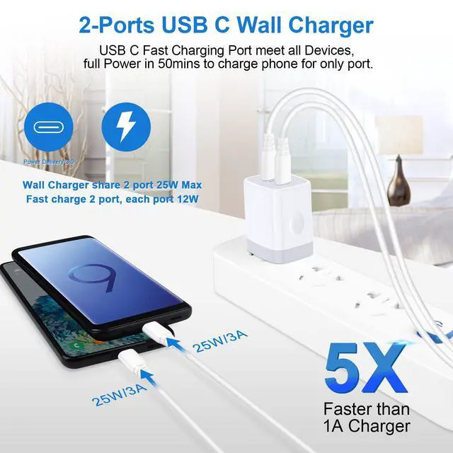 The type c fast samsung charging block is max output for 25W/4.8A max output PD Port, 5 times faster than the original 5W charger.