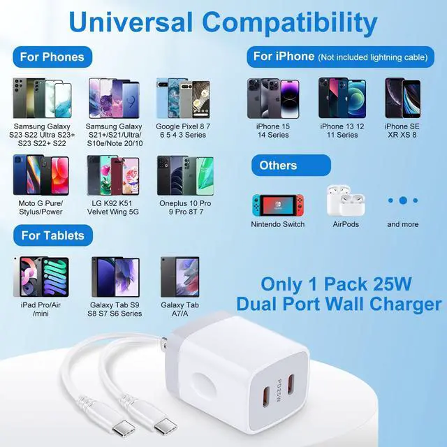 25W USB C iPhone Charger Box Super Fast Charging Android Phone Charger for iPhone 15 Series,Goolge Pixel 8,Samsung Galaxy A54 A14 5G,A24 S23 S22 S21 A03S S20