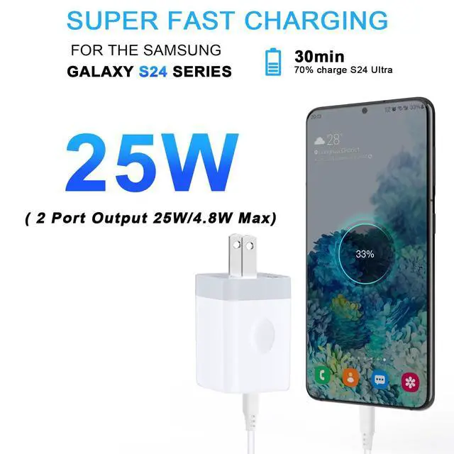 25w super fast samsung android phone charger provides you max 25W output power, charging samsung galaxy a54 up to 70% in just 30 minutes, full charging in only 50mins.