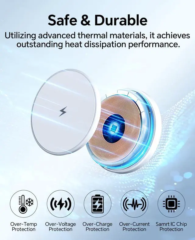 FCC/CE Certified Safety + Eco-Friendly Design: Advanced overcurrent/overvoltage/overheat protection + foreign object detection (safeguards against metal interference). Honeycomb cooling vents prevent overheating. Made with ROHS-certified recyclable materialsideal for eco-conscious gifting (birthdays, corporate rewards)