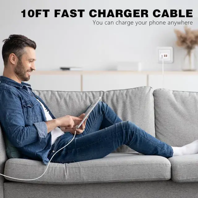 The Perfect Combination of 40W 4-Port iPhone 17 16 15 Fast Wall Charger and 10FT USB C to USB C Charger Cable Allows You to get Phone Charging Done in less Time,3X Faster than Regular Charging.The Built-in Protection Device Can intelligently Adjust the input Power of the Mobile Phone and Automatically Match the Current Required by the Device.Ensures 100% Flawless Compatibility With Devices.
