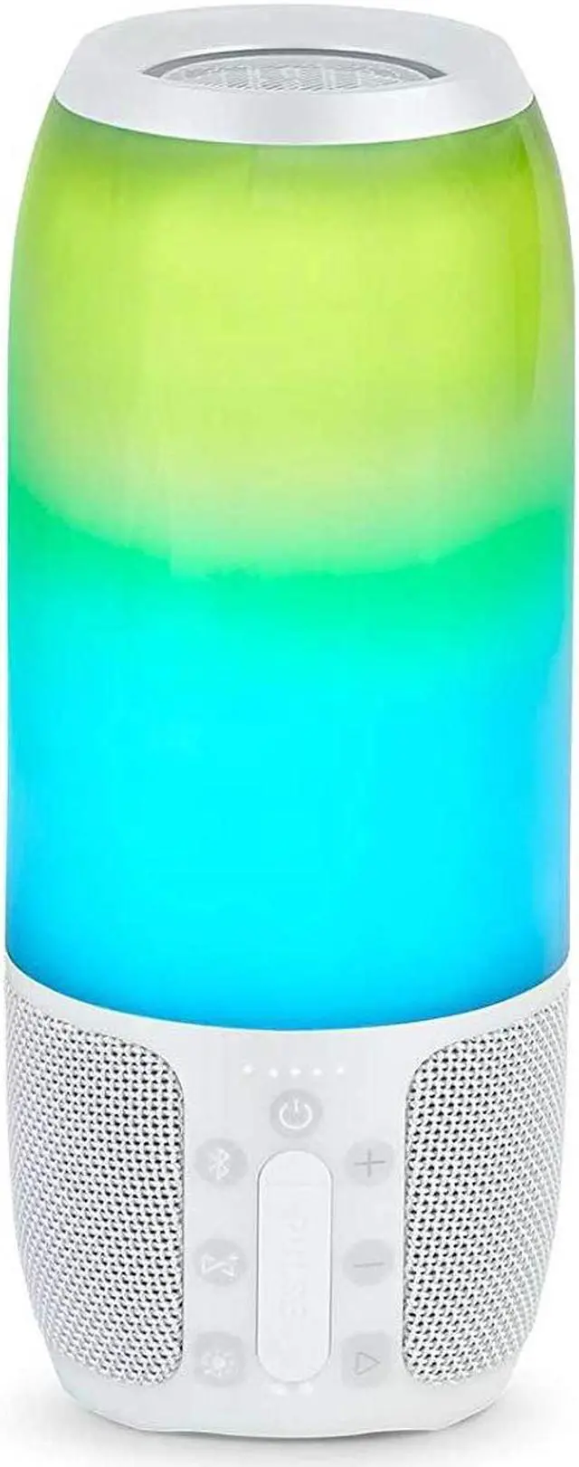Take your listening experience to the next level with the JBL Pulse 3, the portable, waterproof Bluetooth speaker that combines 360° sound with 360° lightshow. Bring your music to life with glowing LEDs wherever you are. With a built-in rechargeable battery that delivers up to 12 hours of playtime and an IPX7 waterproof housing, Pulse 3 is perfect for worry-free listening by the beach or pool - or even in it. With JBL Connect+ technology, you can wirelessly link more than 100 JBL Connect+ enabled speakers to amplify the party. Pulse 3 also features a noise and echo-cancelling speakerphone for crystal clear calls.