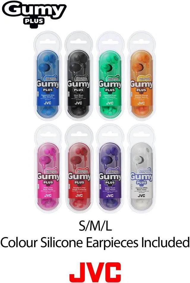 JVC\\'s white HA-FX5 Gumy Plus is an inner-ear version of the top-selling JVC Gumy for those who prefer the inner-ear design over an earbud. The Gumy Plus features a rubber body for a comfortable fit and good noise isolation, which ensures a better listening experience. To tailor the fit to each user, silicone earpieces in small, medium and large are included. It has a 3.3 ft. cord with a gold-plated iPhone-compatible plug. . Color matched to all iPod nano 5G models . Curved design & soft material for a comfortable fit . Sensitivity: 108dB/1mW . Max input: 200mW . 3.28ft color-matched cord with gold-plated, iPhone/iPod-compatible plug . White