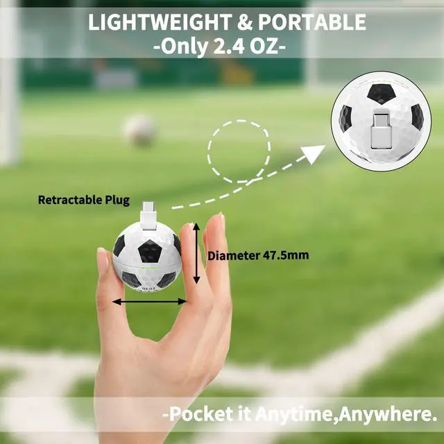 Ultra-Compact & Portable: With its authentic golf ball dimensions (47.5mm) and lightweight construction (only 2.4oz), this mini power bank fits perfectly in your pocket, golf bag, or desk drawer. The compact size makes it ideal for everyday carry and travel emergencies.