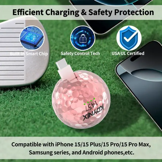 Ultra-Compact & Portable: With its authentic golf ball dimensions (47.5mm) and lightweight construction (only 2.4oz), this mini power bank fits perfectly in your pocket, golf bag, or desk drawer. The compact size makes it ideal for everyday carry and travel emergencies.