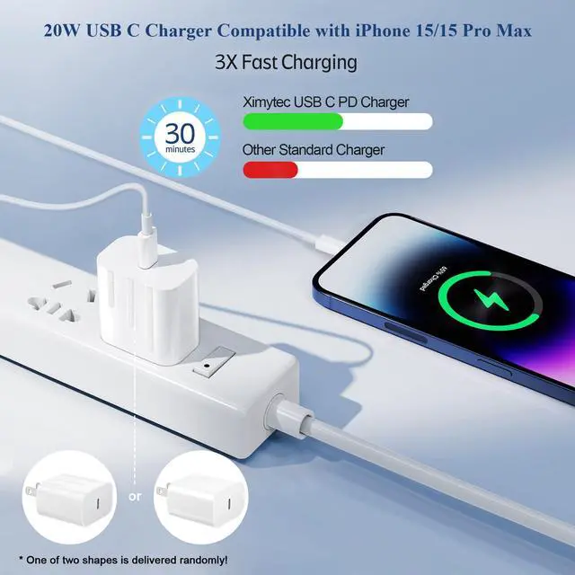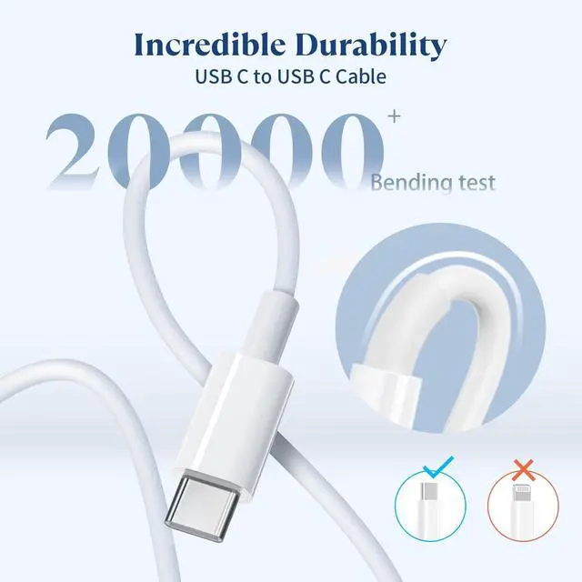 20W USB C Fast Charger Compatible with iPhone 15/15 Plus/ 15 Pro/ 15 Pro Max/iPad Pro, 2Pack PD Type C Charger Blocks with 6FT USB C to C Cable