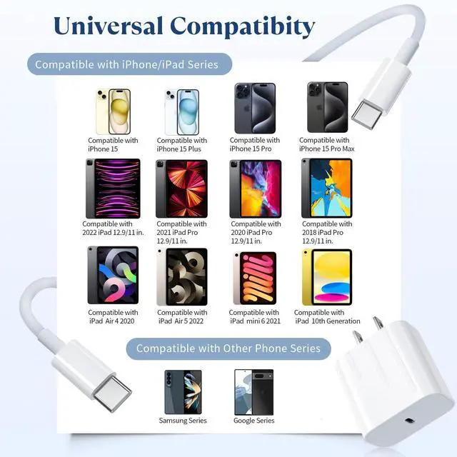 | Compatible Phone Models | compatible with iPhone 16/16 Plus/16 Pro/16 Pro Max/iPhone 15/15 Plus/15 Pro/15 Pro Max/ 2021/2020/2018 iPad Pro 12.9/11 inch,iPad Air 4, Mac Book Air 13 inch, Mac Book 12 inch, Gen 4/3, iPad Pro 11 Gen 2/1, iPad Air 4,Google Pixel 4/ 4 XL / 3a XL / 3 / XL / 2, Galaxy S8 S9 S10 S20 Plus, Note 10, LG and more |