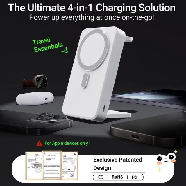 | Special features | Foldable Portable Charger Power Bank 3 in 1 Wireless Charging stationAdjustable AngleFast Charging Battery PackTravel Essentials Lightweight Magnetic Charger StandMatte Velvety Finish |
