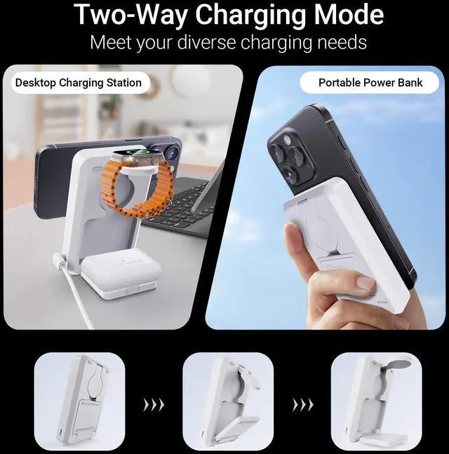 | Special Feature | Foldable Portable Charger Power Bank 3 in 1 Wireless Charging stationAdjustable AngleFast Charging Battery PackTravel Essentials Lightweight Magnetic Charger StandMatte Velvety Finish |