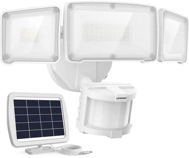 Solar motion security lights lamp heads and motion sensor heads are adjustable