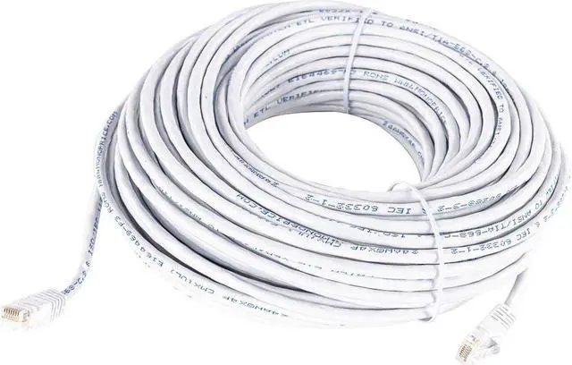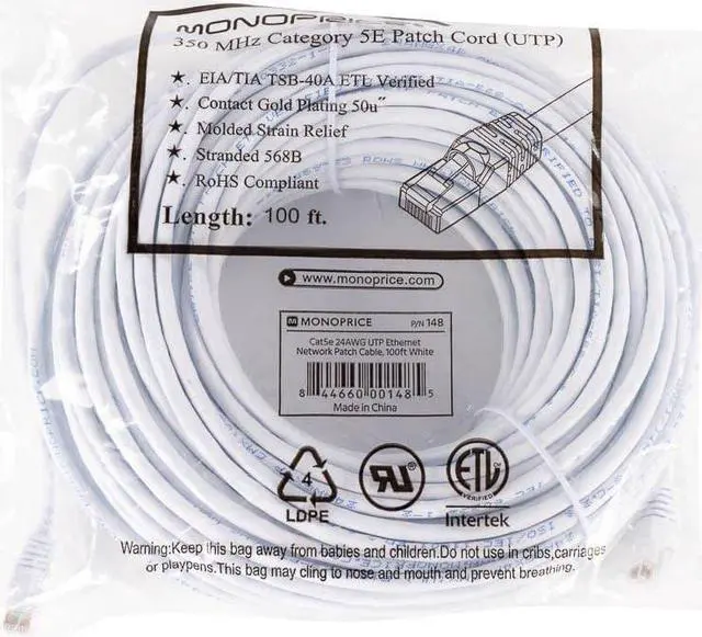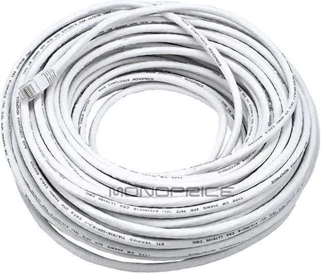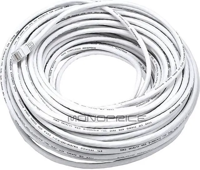 Monoprice Cat5e Ethernet Patch Cable - 100 Feet - White | Network Internet Cord - RJ45, Stranded, 350Mhz, UTP, Pure Bare Copper Wire, 24AWG