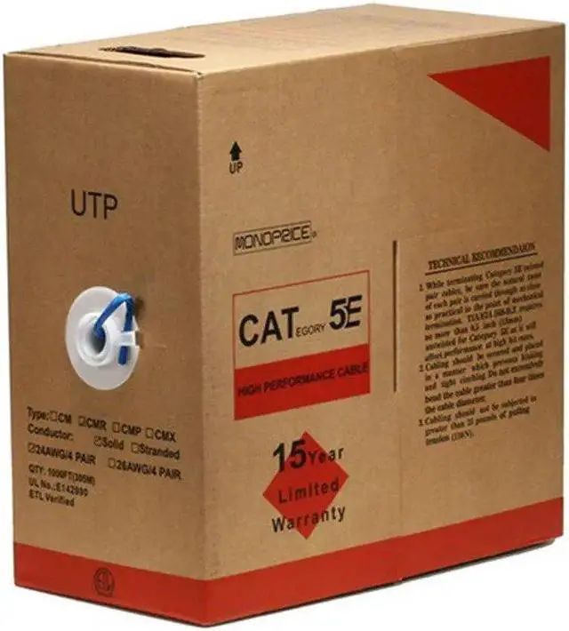 Buy with Confidence: With Monoprice's Lifetime Warranty on all Cables, you can rest assured we stand behind our products and our customers.|Made of 24AWG solid, pure bare copper conductors|Monoprice Ethernet cables are made of 100% pure bare copper wire, as opposed to copper clad aluminum (CCA) wire, & are therefore fully compliant with UL Code 444 & National Electrical Code TIA-568-C.2 fire and safety standards|CMR (Riser) fire safety rating | 350MHz bandwidth