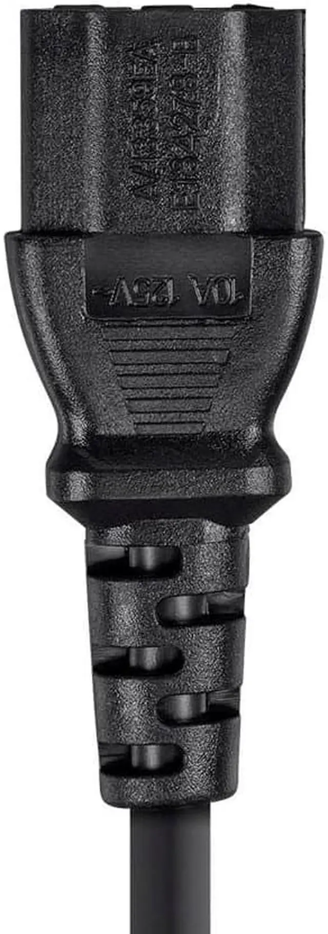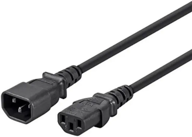 Save an AC power outlet by connecting your computer monitor to the computer power supply or extend a cable with an IEC 60320 C13 connector on one end. This cable features a female IEC 60320 C13 connector on one end and a male IEC 60320 C14 plug on the other end. Simply mate the male C14 connector to another cable with a female C13 connector. Alternatively, mate the male C14 connector to the C13 panel connector on a computer power supply then mate the female C13 connector to a male C14 connector on a monitor or monitor AC power adapter.