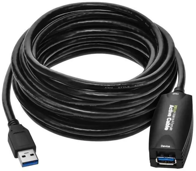 Take USB 3.0 to new lengths with this USB 3.0 Active extension cable from Monoprice! With data transfer rates up to 10 times faster than USB 2.0, USB 3.0 is quickly gaining in popularity. However, although it has a higher voltage and current level, passive cables are still limited to a maximum length less than 15 feet. This active extension cable draws power from the USB 3.0 bus and uses it to boost and regenerate the data signals, ensuring that full SuperSpeeds can be maintained to much longer lengths. By combining two of these extension cables with a 3 meter passive cables a total length of 13 meters ( 42.6 feet).
